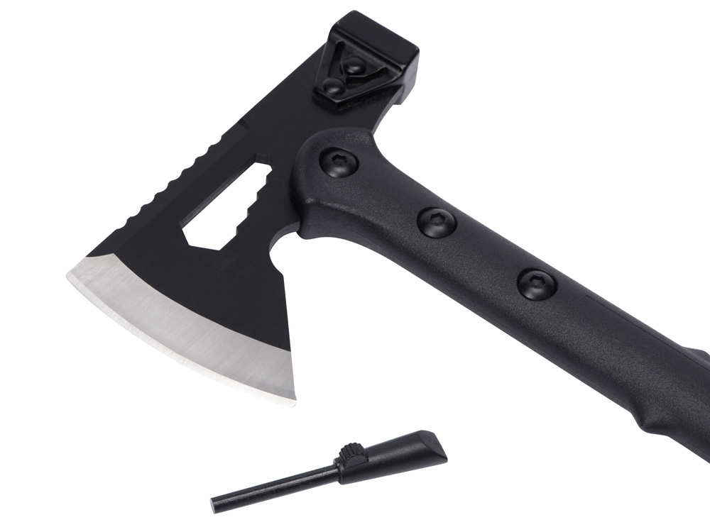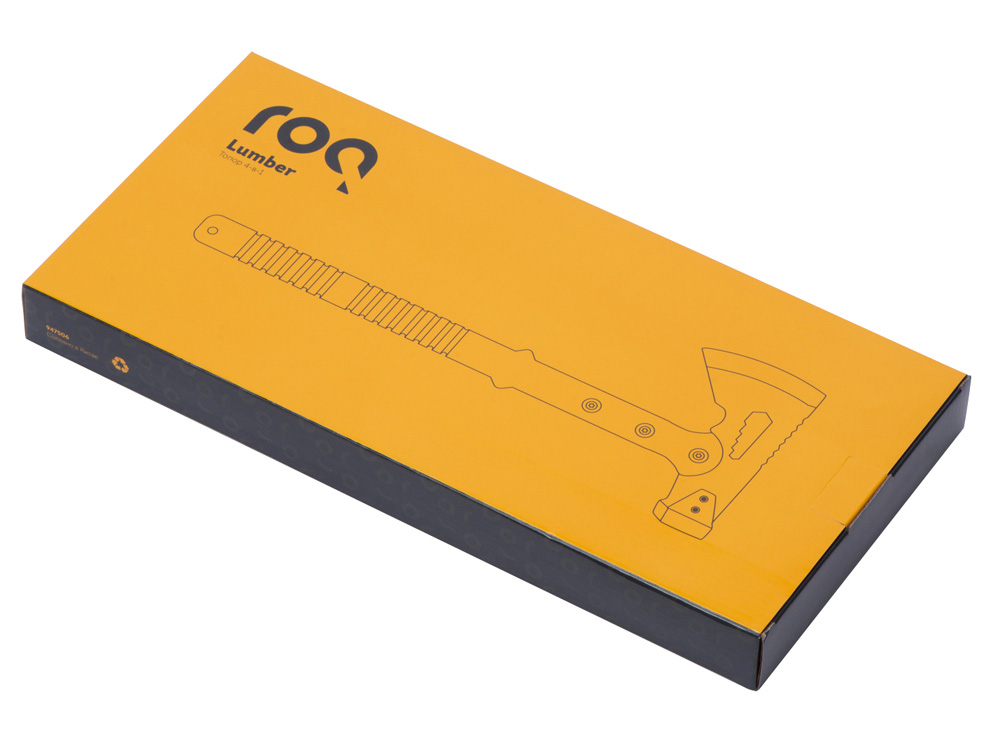 Топор 4-в-1 Lumber бренда roq выполнен из нержавеющей стали 420 марки. Товар поставляется в нейлоновом чехле. В чехле есть специальный кармашек с огнивом. Чтобы высечь искры для разжигания костра, возьмите огниво за рукоять в одну руку и проведите лезвием по стержню огнива под углом в 90 градусов в направлении от себя. В целях безопасности не высекайте искры в помещении или около легко воспламеняемых материалов. Поставляется с чехлом в картонной коробке.