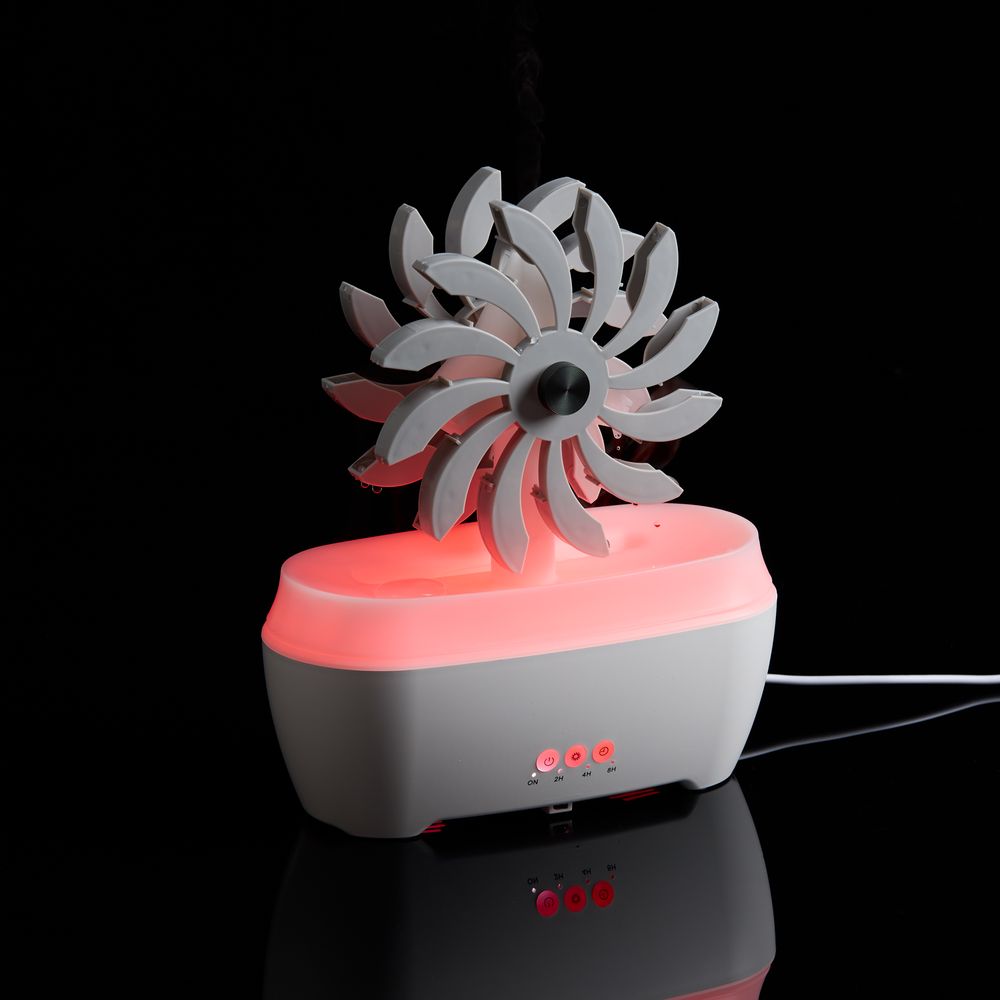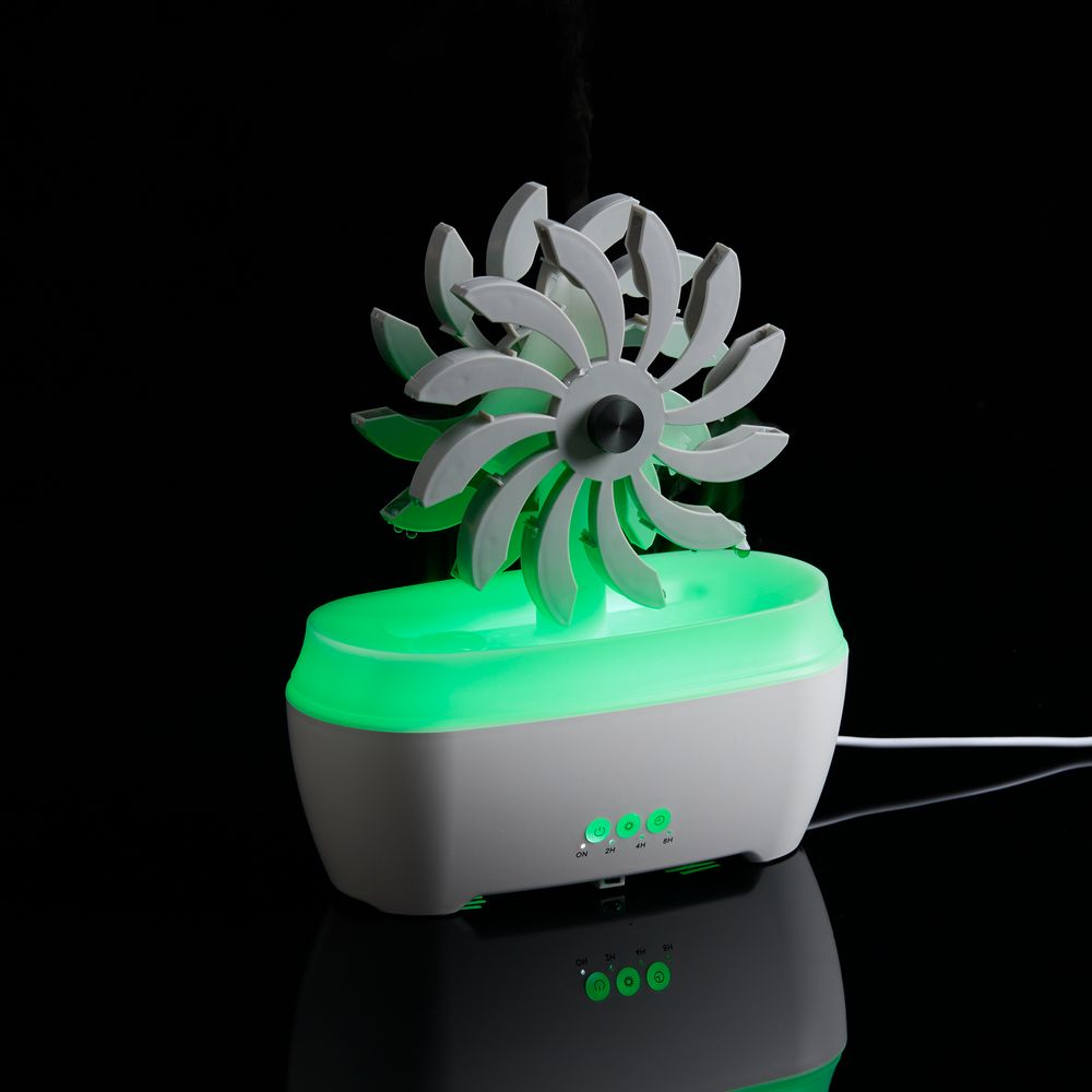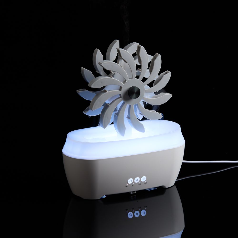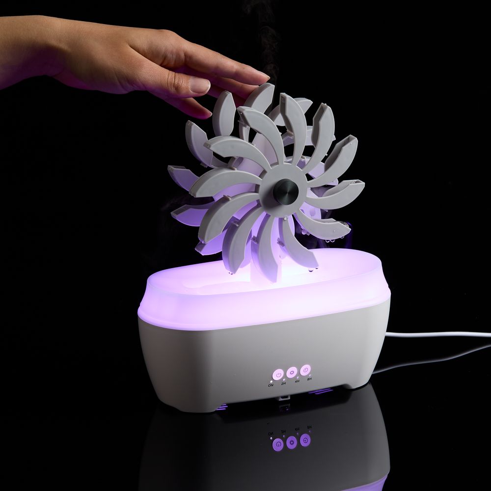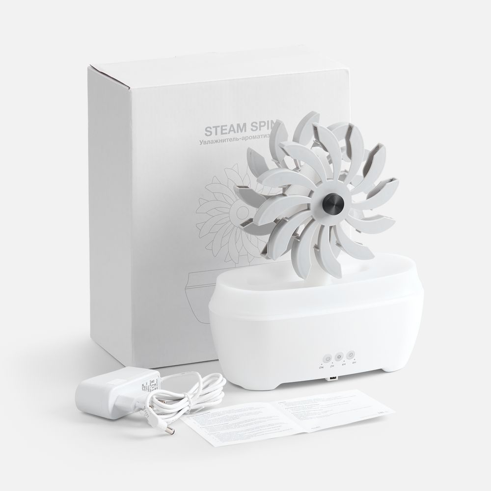 Отличительная черта модели Steam Spin — подвижный элемент с вращающимися лопастями, на которые поступает вода. Кому-то они напомнят водяную мельницу или электрическую турбину, а для кого-то станут незабываемым цветком бетонных джунглей. В любом случае их разнонаправленное движение — умиротворяющее и завораживающее зрелище.- Увлажнение и ароматизация воздуха