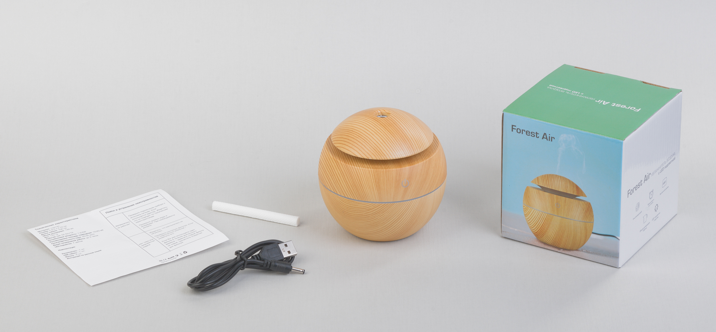 Компактный увлажнитель Forest air изготовлен из качественного пластика с имитацией дерева. Лаконичный экодизайн подчёркивает встроенная подсветка. Включение и сам процесс работы настольного увлажнителя максимально просто регулируется сенсорной кнопкой.