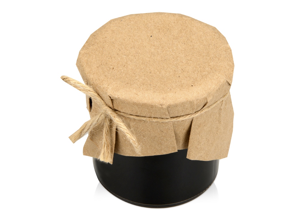 Банка варенья обернута крафт-бумагой, на которую возможно сделать нанесение корпоративного логотипа. -