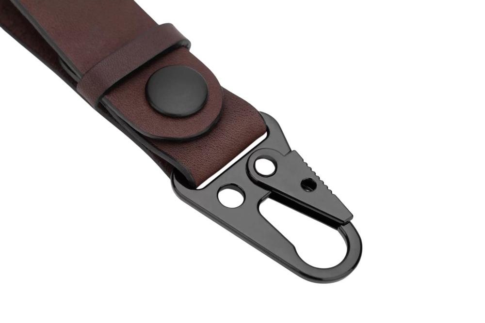 Ремешок сшит из прочной кожи коричневого цвета. Оборудован надёжным металлическим карабином, самопроизвольное расцепление которого невозможно. Ключи, прицепленные к нему, обречены вечно храниться в глубинах сумки или кармана джинсов, и у них нет ни единого шанса потеряться. Прицепить ремешок можно к шлёвке джинсов или к куртке. -
