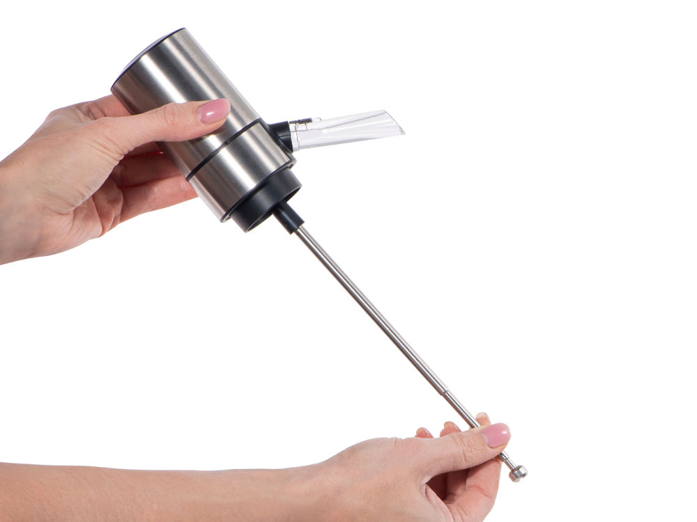 Автоматический аэратор от Master of Wine разливает вино по бокалам необычным образом: вам просто нужно установить его на горлышке бутылки и нажать на кнопку, и из трубки аэратора польется насыщенное кислородом вино.