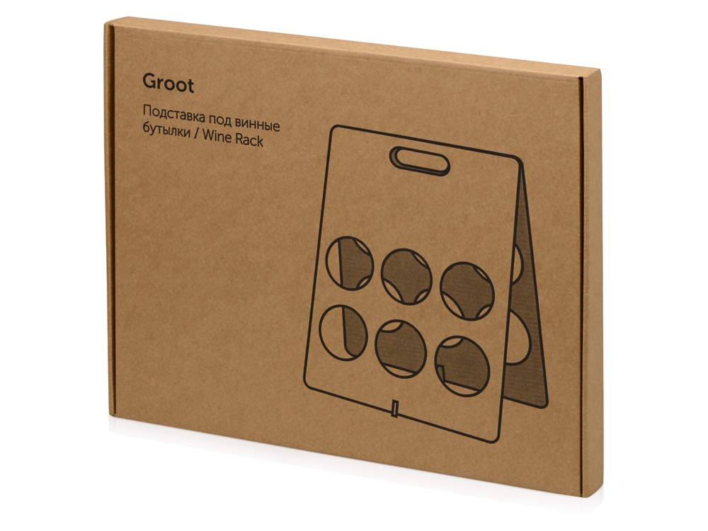 Подставка под винные бутылки Groot – незаменимый аксессуар, который пригодится на любом корпоративном мероприятии и украсит праздничный стол. Она изготовлена из легкого, но при этом крепкого материала и имеет удобную ручку для переноски. Подставка выигрышно подчеркнет символику компании с помощью гравировки благодаря большому пространству для брендирования. В комплекте идет индивидуальная крафтовая коробка со стильным дизайном. -