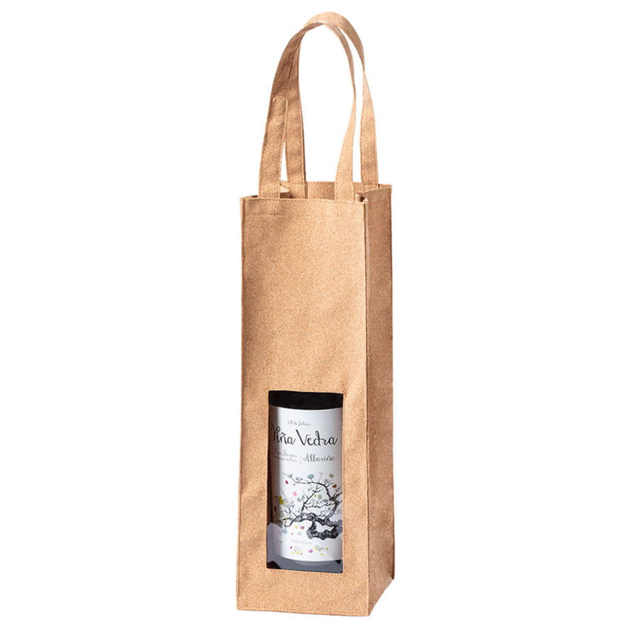 Упаковка для одной бутылки с окном и ручками, изготовлена из пробкового дерева Индивидуальная упаковка - ПЭ пакет -
