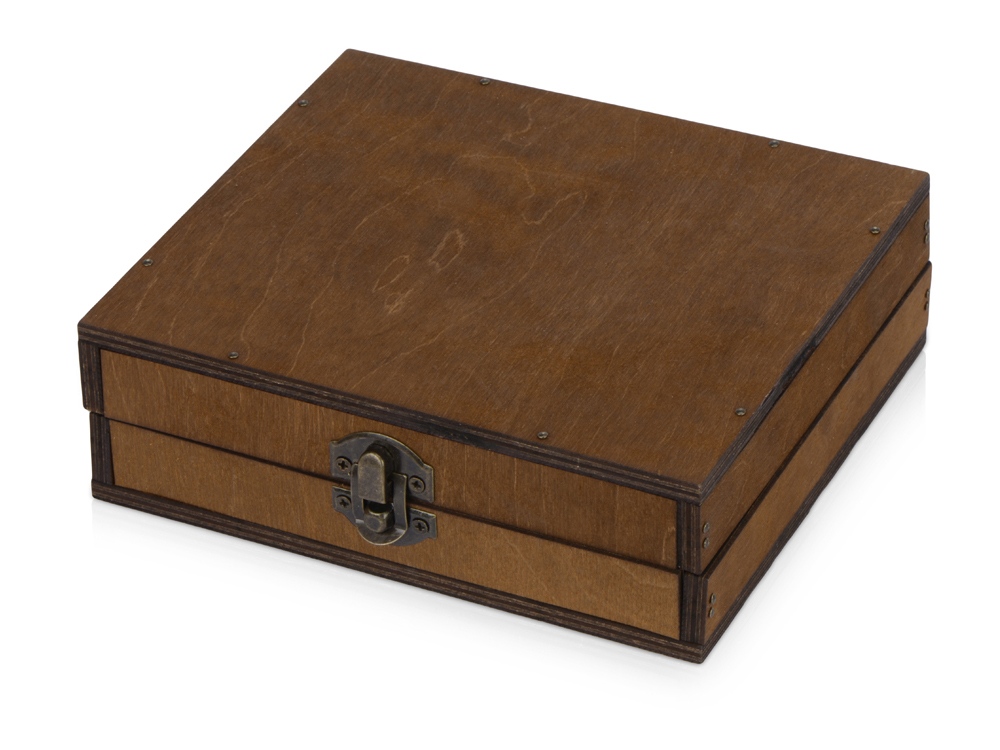 В набор аксессуаров для вина входят штопор-открывалка, воротничок на бутылку, пробка для бутылки и даже термометр. Набор поставляется в презентабельном деревянном футляре. -
