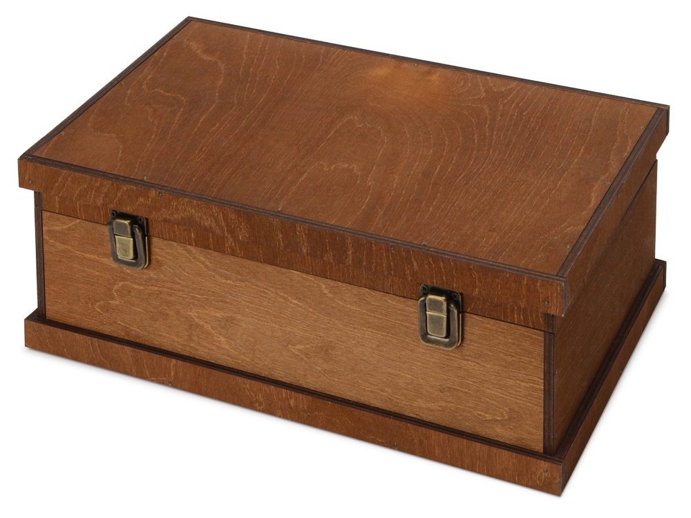 Подарочный набор придется по вкусу подлинным эстетам и ценителям вин. Для легких на подъем — в деревянном сундучке уместится все, что нужно для внезапного праздника: бутылка вина, пара бокалов, штопор, пробка и даже воротничок для бутылки. Удобство и безопасность переноски хрупких предметов обеспечивает наполнитель. Обратите внимание: комплектация подарка не включает в себя напиток — настоящие ценители предпочтут подобрать вино на свой вкус.
