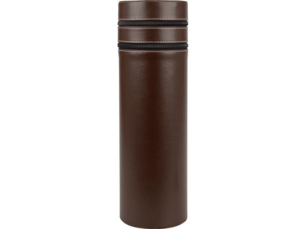 Стильный тубус для вина выполнен из качественной эко кожи. Основа тубуса это прочная капсула, которая надежно защитит бутылку вина. Тубус можно использовать как упаковку для подарочной бутылки вина или приобрести отдельно для сохранности вина в походах или выездах на природу. В крышке тубуса есть дополнительное отделение для хранения аэратора и специального воротничка для бутылки. В комплект с тубусом, так же входит профессиональный штопор.