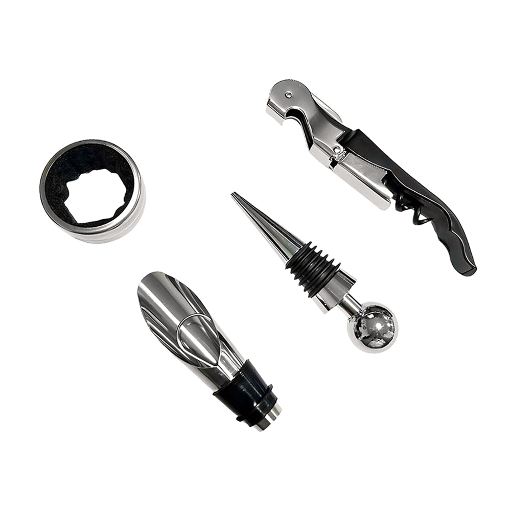 Винный набор в подарочной коробке включает в себя: - штопор с ножом для срезания фольги - каплеуловитель (кольцо надевают на горлышко бутылки при разливе вина по бокалам, вставка из ткани не дает каплям вина стекать по бутылке) - аэратор (служит для аэрации и насыщения напитка кислородом) - пробка (для закупоривания открытой бутылки)- Виды нанесений: Тампопечать, Гравировка-А2 (оптоволоконный лазер), Гравировка Круговая (оптоволоконный лазер), УФ-печать А2, УФ-Лак, УФ-Цвет+Лак