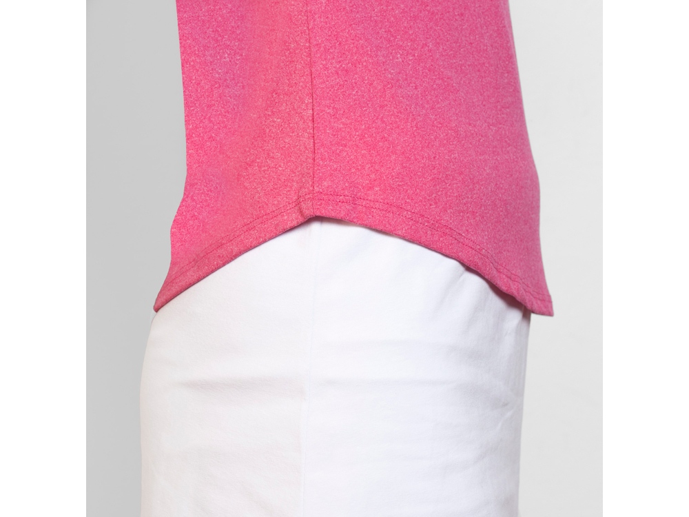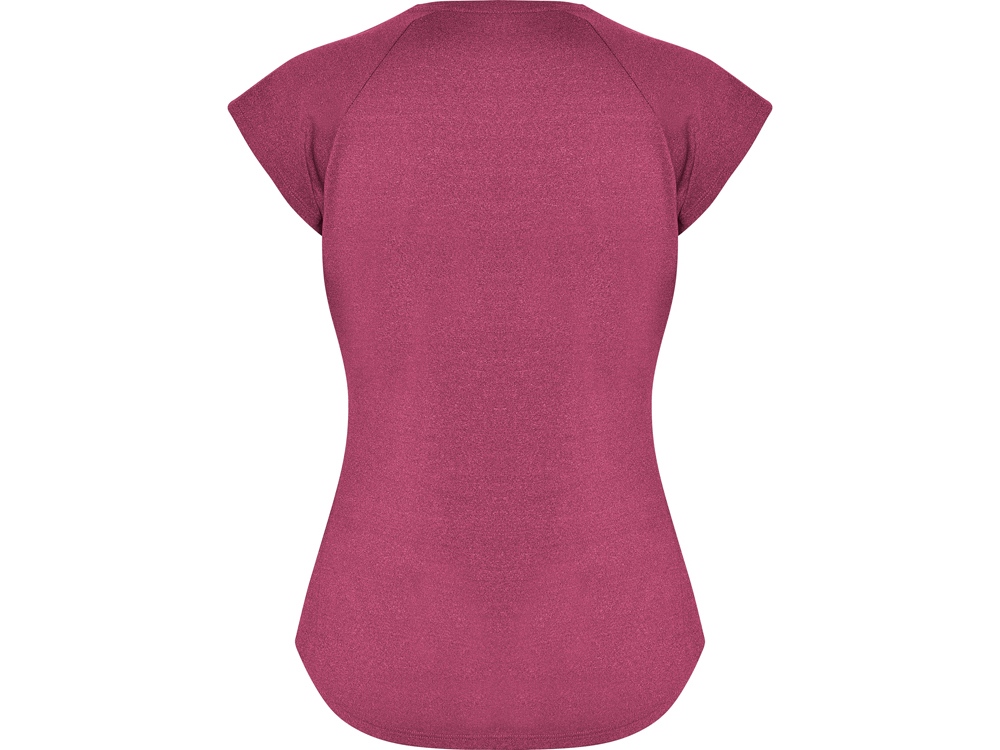 Спортивная женская футболка с коротким рукавом реглан. Вырез горловины V. Полотно из полиэстера на ощупь напоминающее хлопок. Приталенный силуэт. -