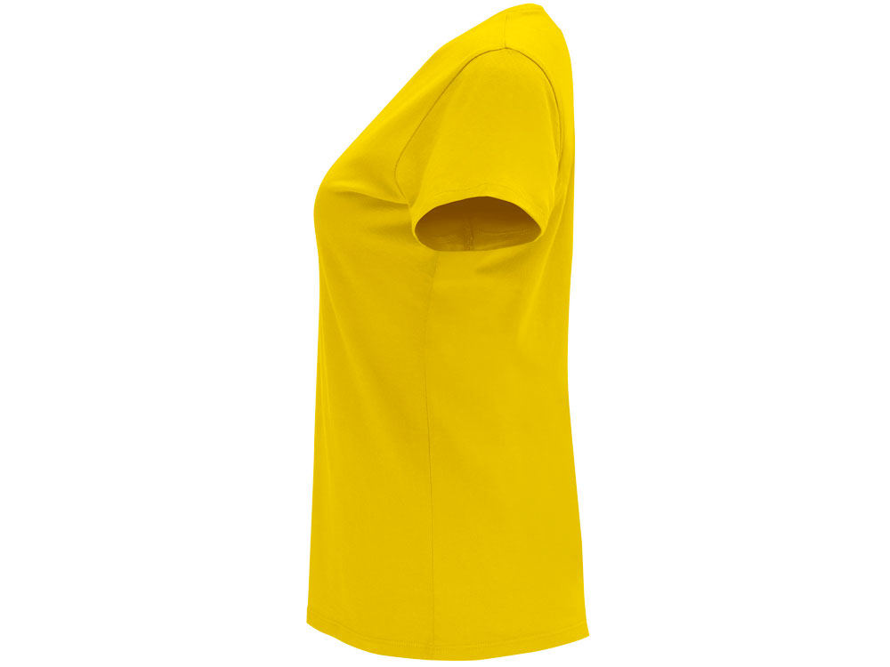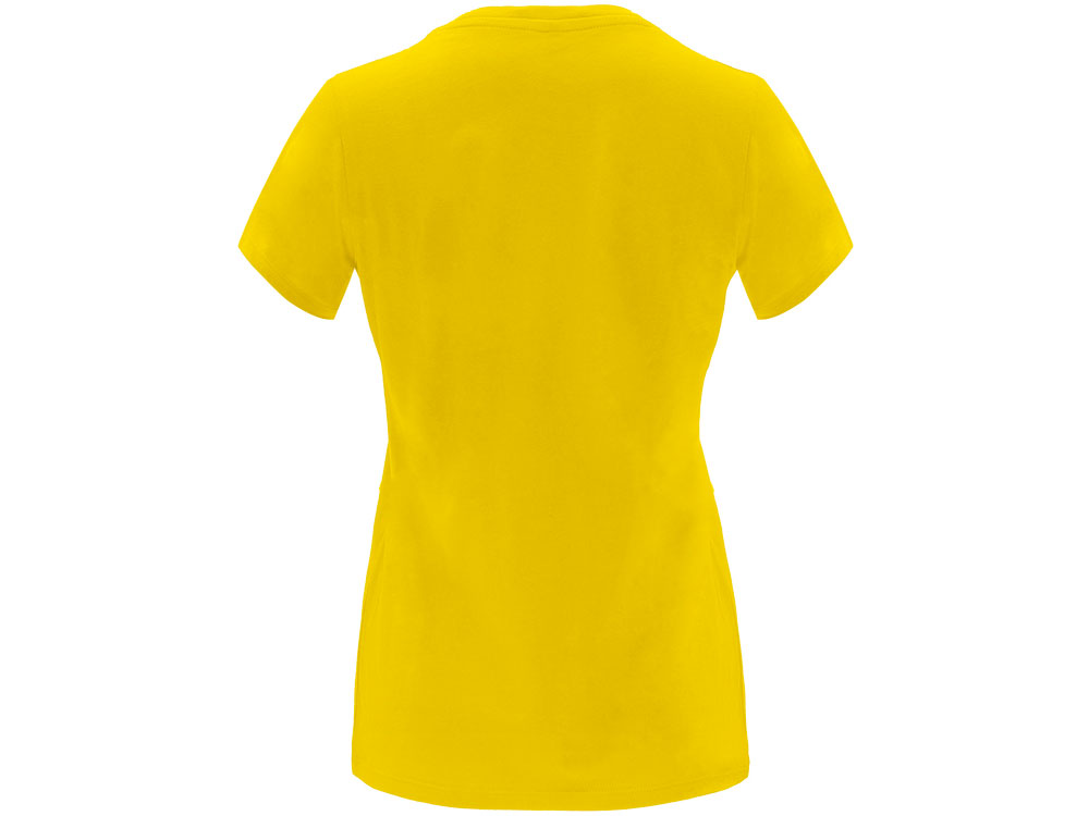 Женская приталенная футболка. Круглый вырез горловины обработан рибом 1х1. Шов горловины укреплен тесьмой. -