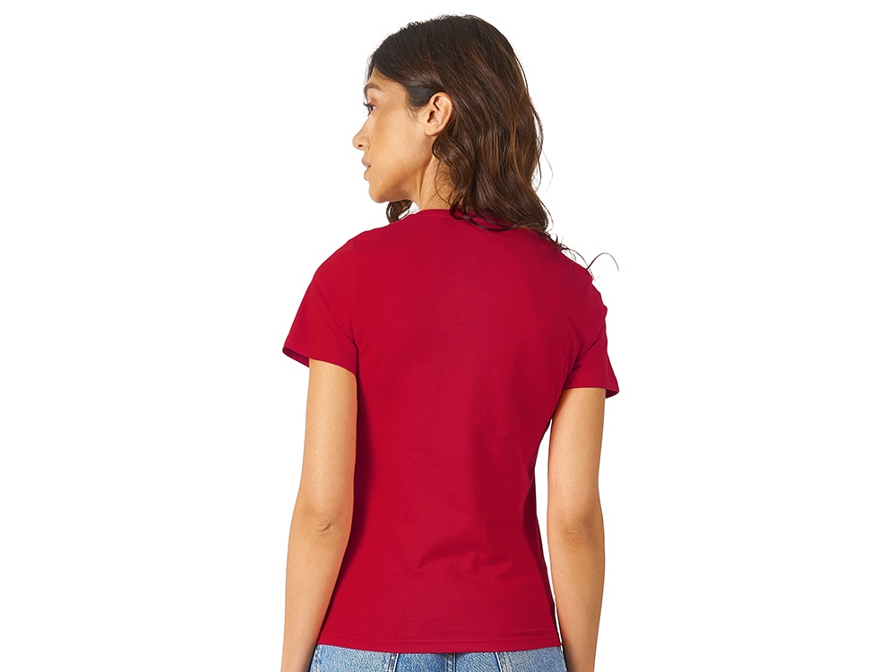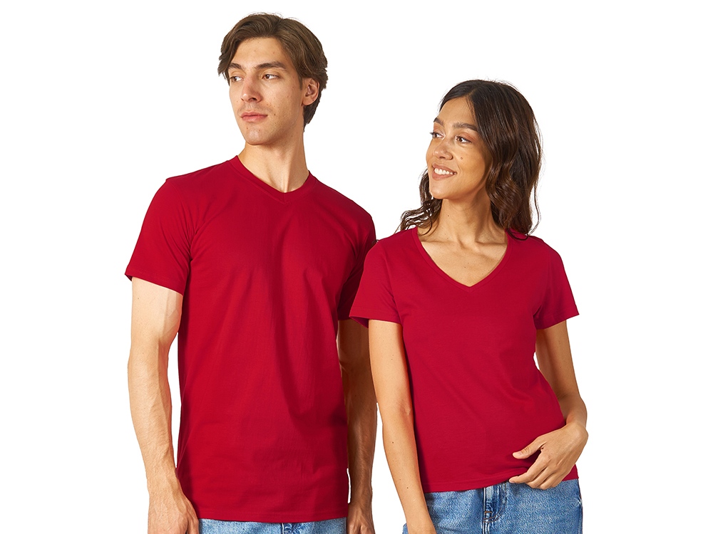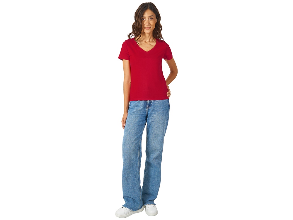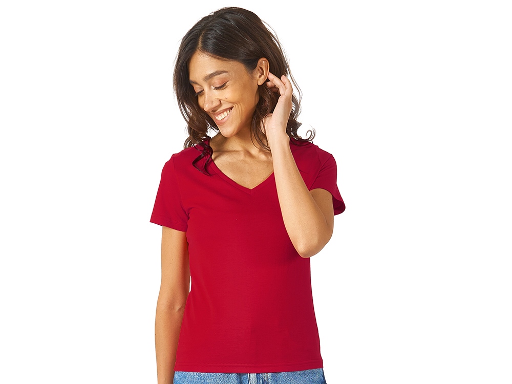 Женская футболка из натурального хлопка с элегантным V-образным вырезом. Материал отлично подходит для нанесения рекламной информации. Натуральная ткань не вызывает раздражения кожи. -