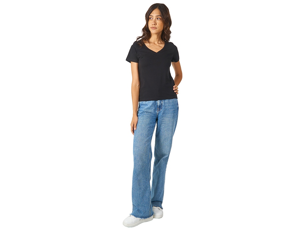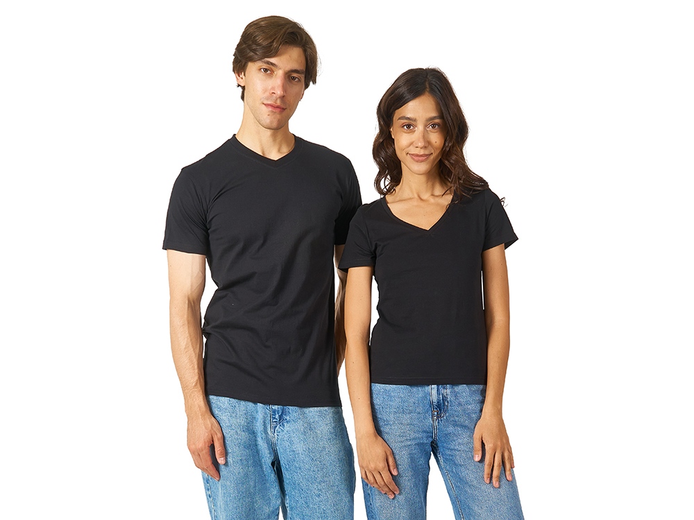 Женская футболка из натурального хлопка с элегантным V-образным вырезом. Материал отлично подходит для нанесения рекламной информации. Натуральная ткань не вызывает раздражения кожи. -