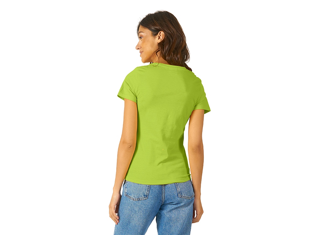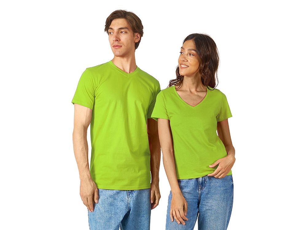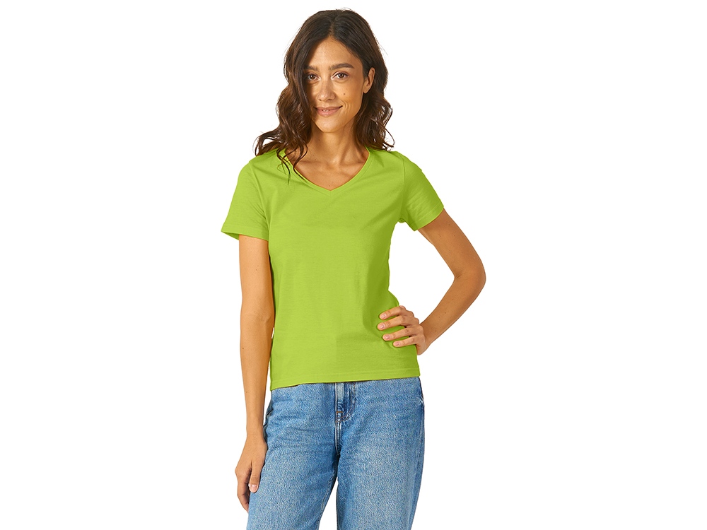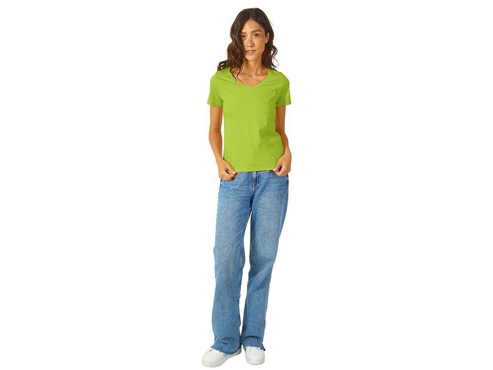 Женская футболка из натурального хлопка с элегантным V-образным вырезом. Материал отлично подходит для нанесения рекламной информации. Натуральная ткань не вызывает раздражения кожи. -