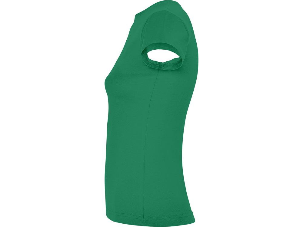 Приталенная женская футболка с боковыми швами и круглым вырезом горловины, двухслойный риб 1х1. Широкая цветовая палитра.
