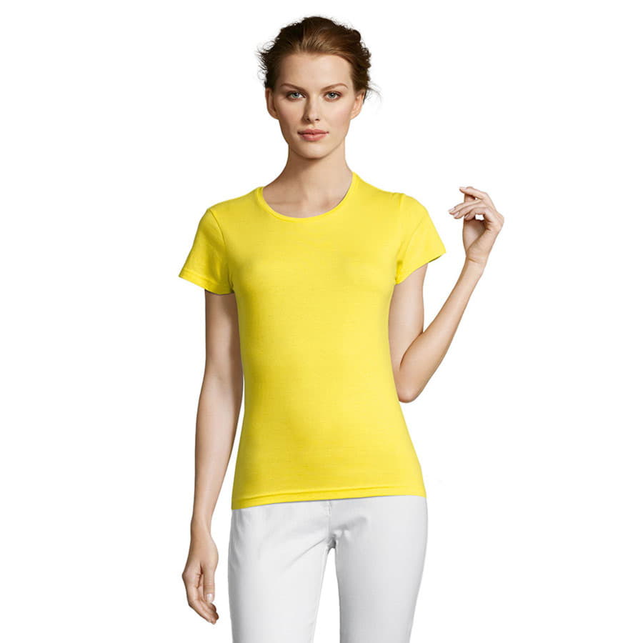 Цвет, близкий к Pantone Process Yellow C Все мы знаем: чтобы увеличить узнаваемость компании, брендированные товары должны быть полезными, актуальными и качественными. Всем этим характеристикам отвечает футболка знаменитого французского бренда модной одежды SOLS. Miss — это базовая, комфортная и недорогая классическая футболка с фасонными (фигурными) швами для более женственной посадки из мягкого хлопкового полотна. Мягкость достигается за счет тонкой, но прочной пряжи, обеспечивающей приятные тактильные ощущения при носке.Горловина обработана изящным рибом (резинкой 1*1), проложены дополнительные укрепляющие строчки для предотвращения ее растяжения. 100% хлопок, классический крой, мягкость полотна и изящная посадка — все это делает футболку Miss настоящим бестселлером! -