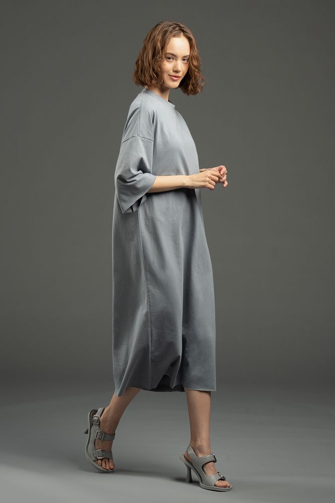 Платье свободного кроя со спущенным плечом.- Воротник из основного полотна тон в тон