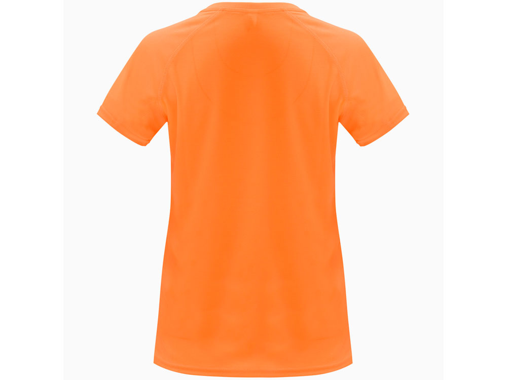 Спортивная футболка с коротким рукавом реглан для женщин. Круглый вырез горловины с отделкой плоским швом. Рукав сложного кроя для обеспечения дополнительного удобства при занятиях спортом. Отделка плоским швом с застилом по пройме и рукавам.