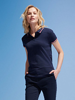 Рубашка поло женская Pasadena Women 200 с контрастной отделкой, ярко-синяя с белым