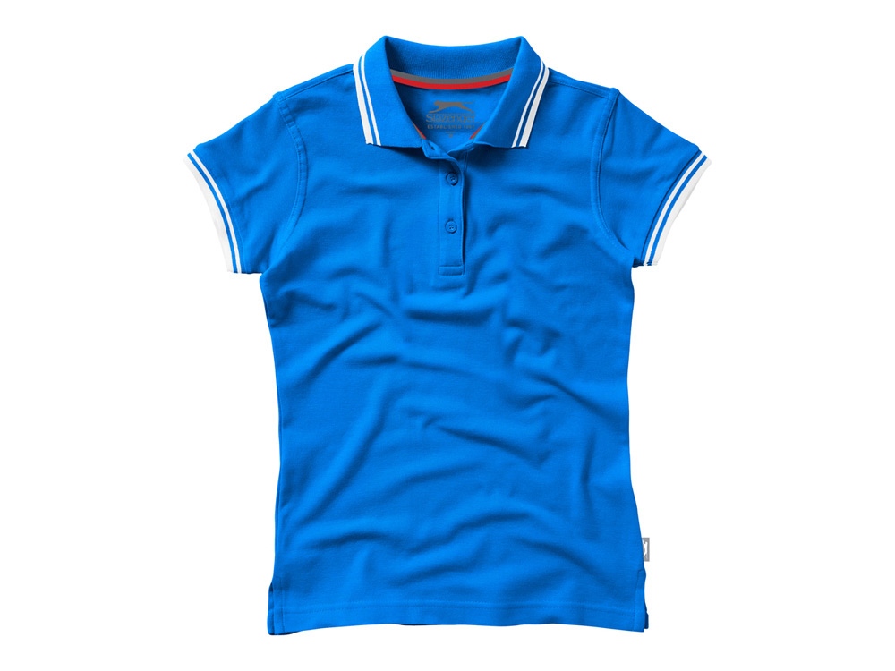 Женская рубашка поло с короткими рукавами Deuce. Прилегающий покрой. Воротник и манжеты резинка 1х1. Пуговицы с гравировкой. Двухцветная лента внутри на горловине. Лейба-флажок сбоку. Пике, 100% чесаный хлопок. 180 г/м². -