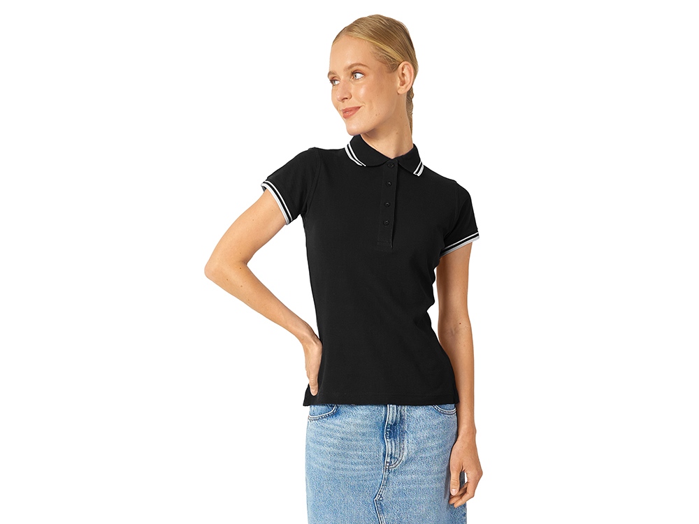 Рубашка-поло Erie с окантовкой. Воротник и манжеты резинка 1х1. Мужская модель с двумя пуговицами, женская - 4 пуговицы в тон изделия. Обшивка внутри воротника. Женская модель с разрезами по бокам. Женская модель приталена. Пике, 100% чесаный хлопок. Плотность 180 г/м2. -