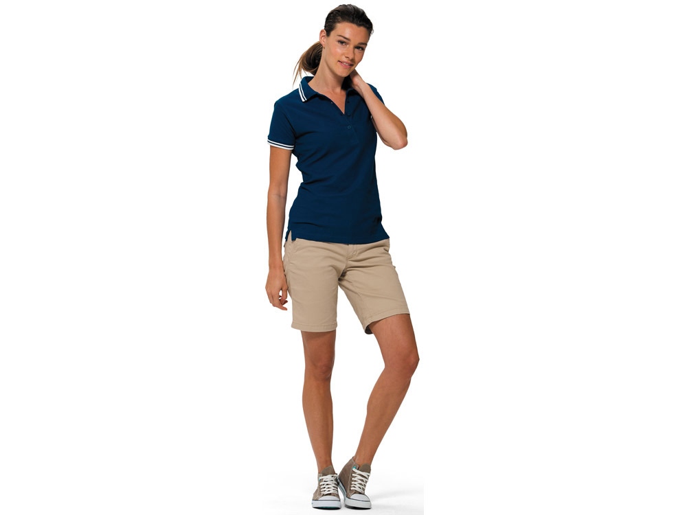 Рубашка-поло Erie с окантовкой. Воротник и манжеты резинка 1х1. Мужская модель с двумя пуговицами, женская - 4 пуговицы в тон изделия. Обшивка внутри воротника. Женская модель с разрезами по бокам. Женская модель приталена. Пике, 100% чесаный хлопок. Плотность 180 г/м2. -