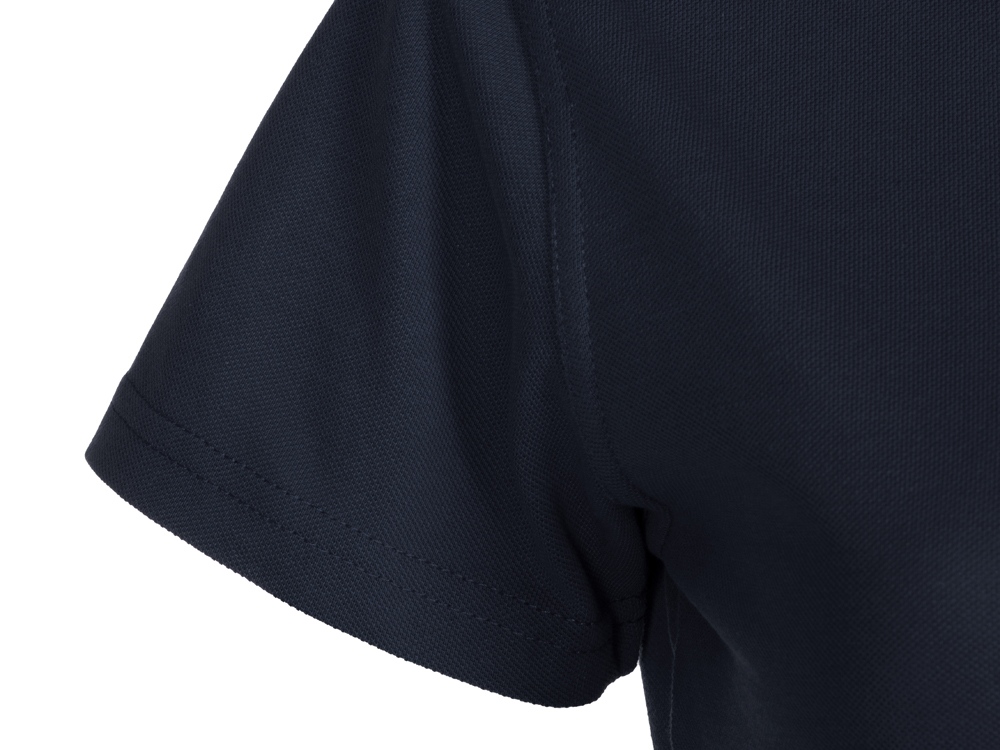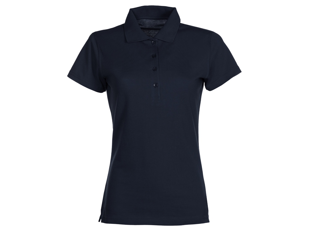 Женская рубашка-поло First. Воротник 1х1. Обшивка внутри воротника. Мужская и детская модели с 2 пуговицами, женская - с 4 пуговицами. Пуговицы с гравировкой в тон. Пике, 100% хлопок. 160 г/м2.