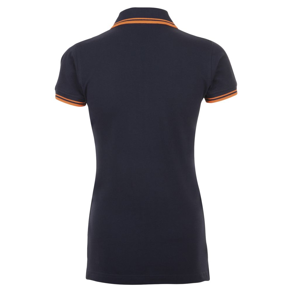 Рубашка поло женская Pasadena Women 200 с контрастной отделкой, темно-синяя (navy) с неоново-оранжевым