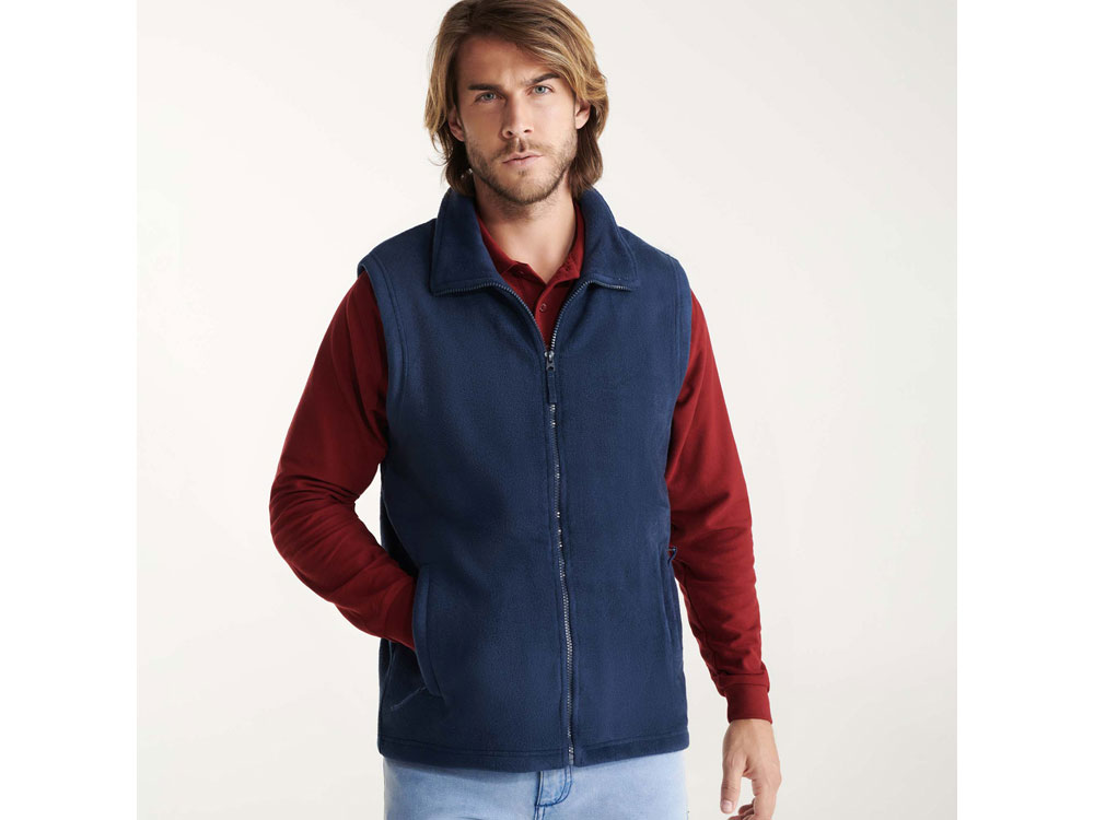 Флисовый жилет на молнии с воротником стойкой. Боковые карманы закрываются на молнию. -