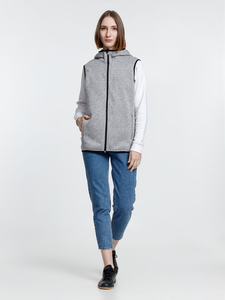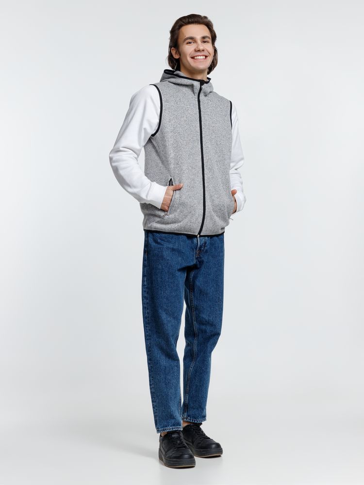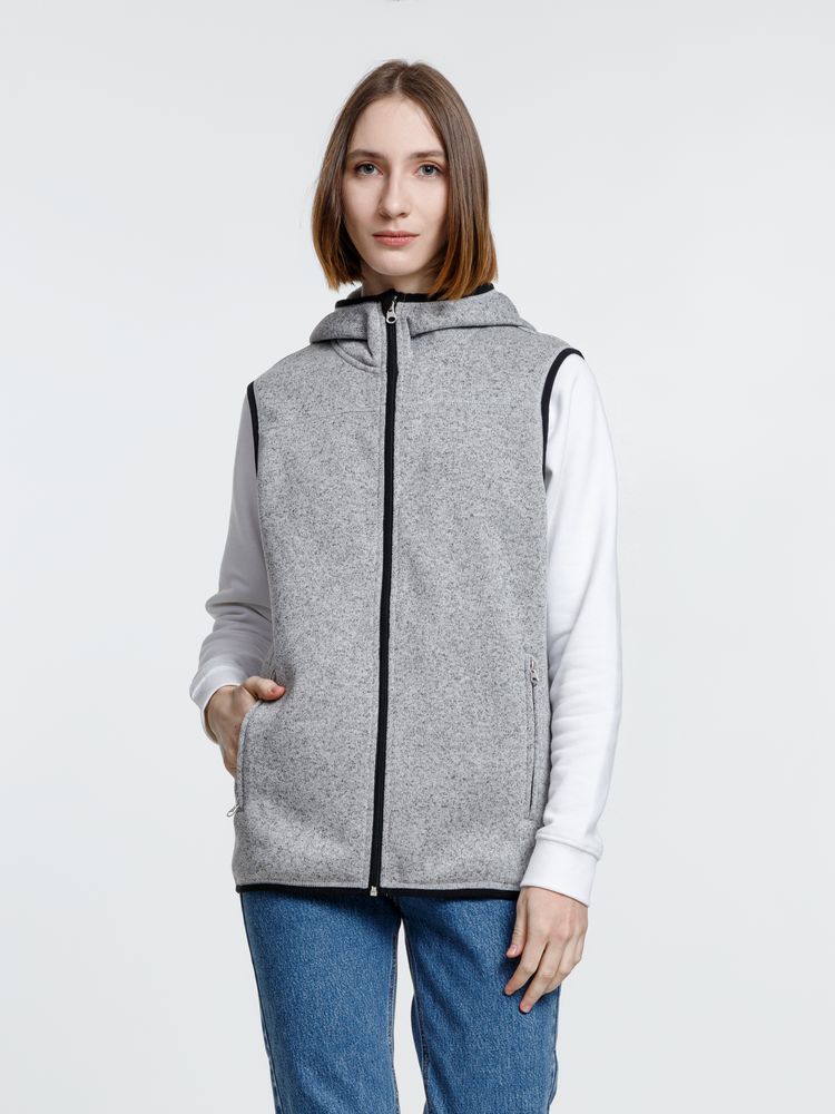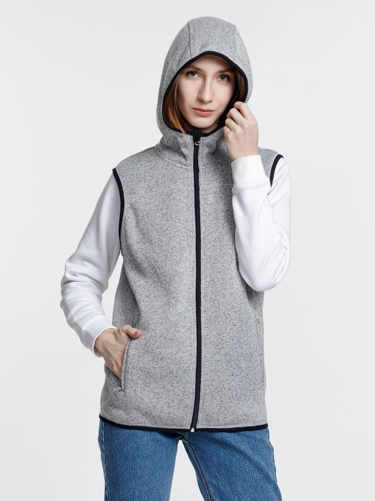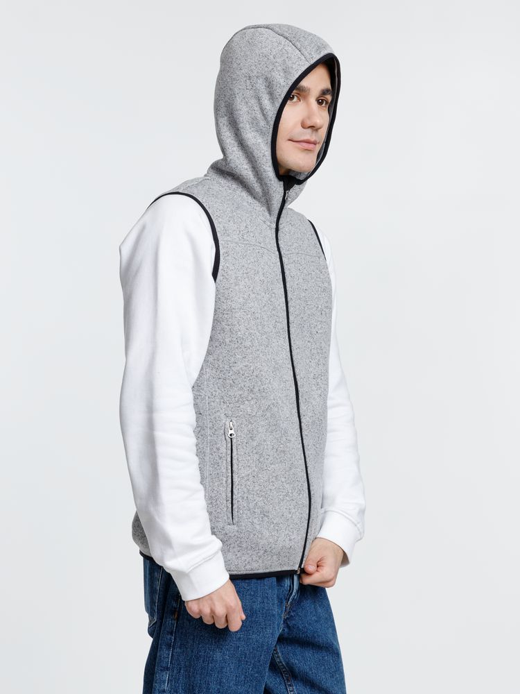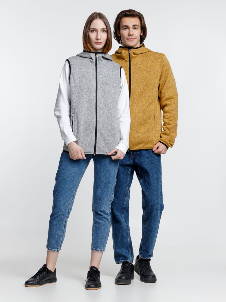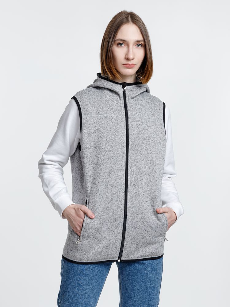 Вязаный жилет унисекс на молнии с капюшоном.- Ветрозащитная планка