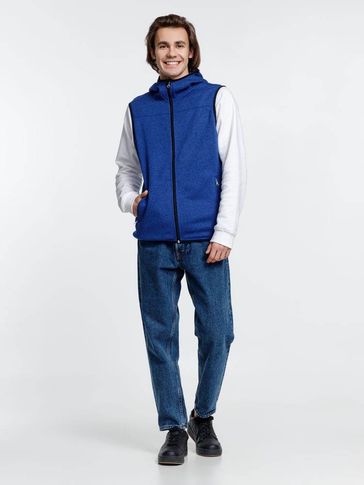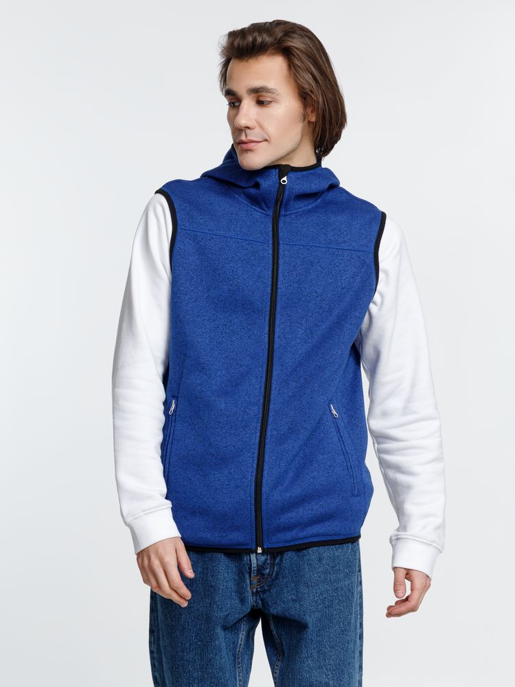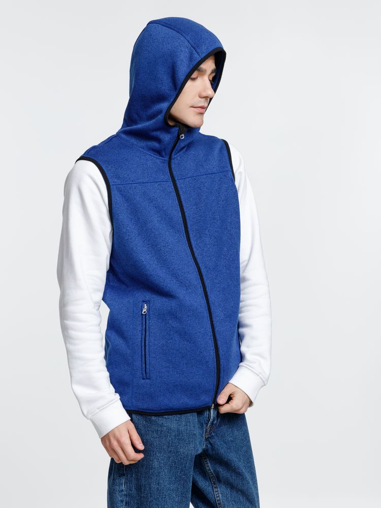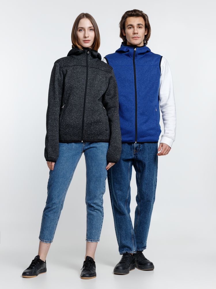 Вязаный жилет унисекс на молнии с капюшоном.- Ветрозащитная планка