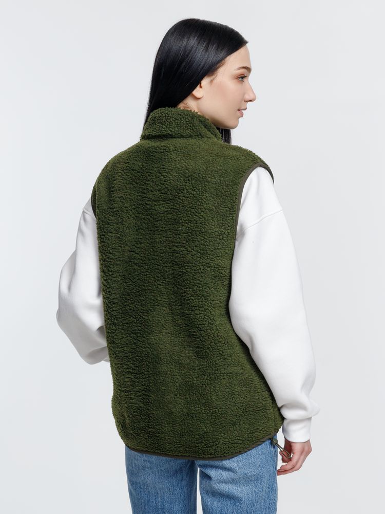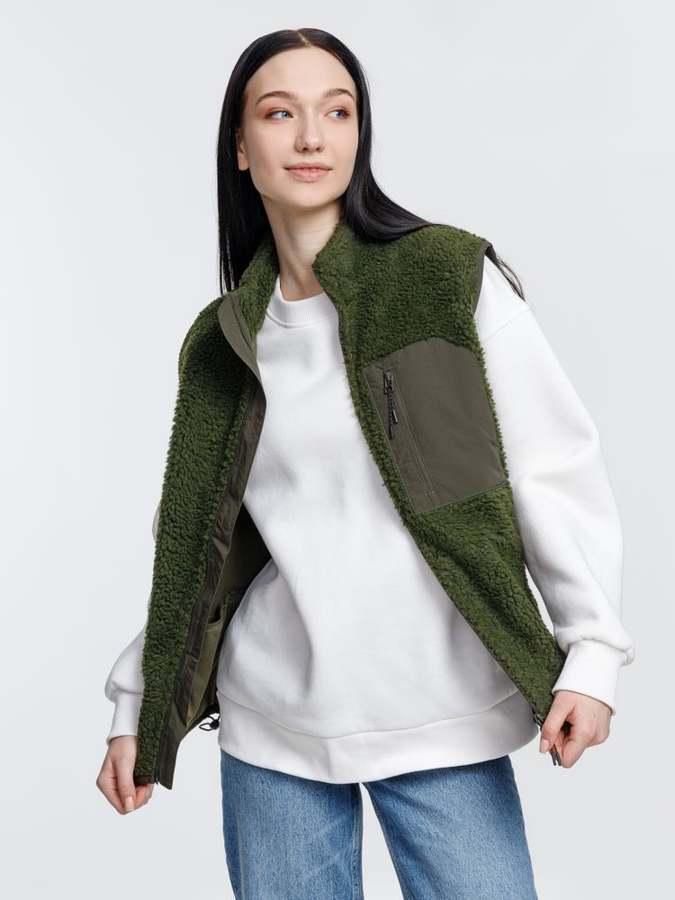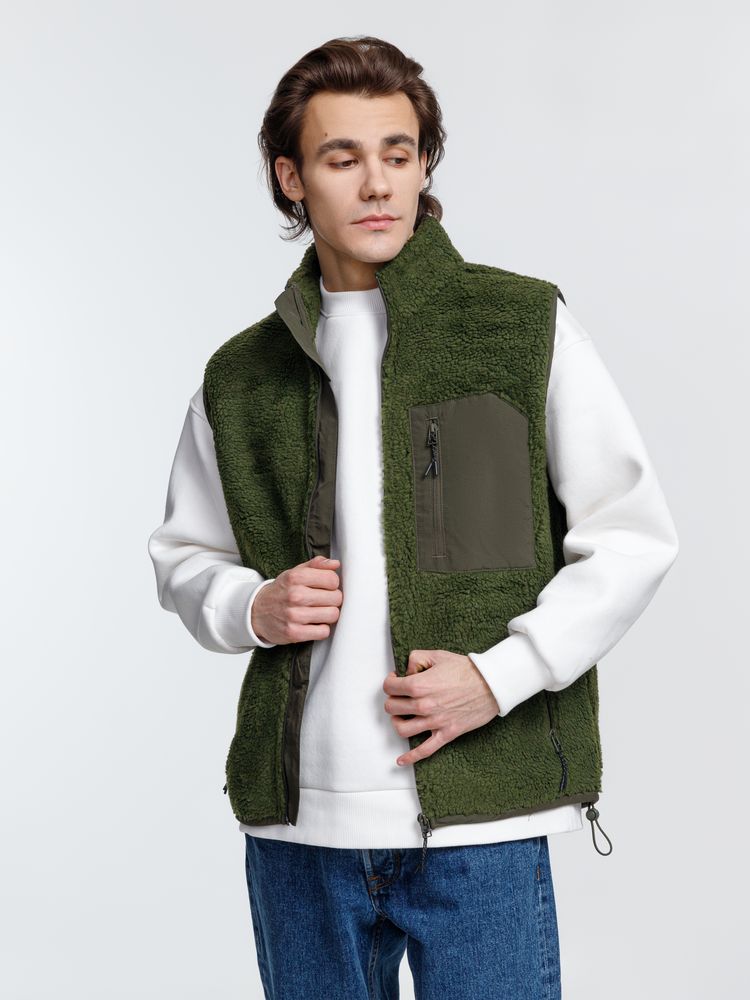 Жилет унисекс из фактурной искусственной шерпы с гладкой отделкой из таслана.- Воротник-стойка