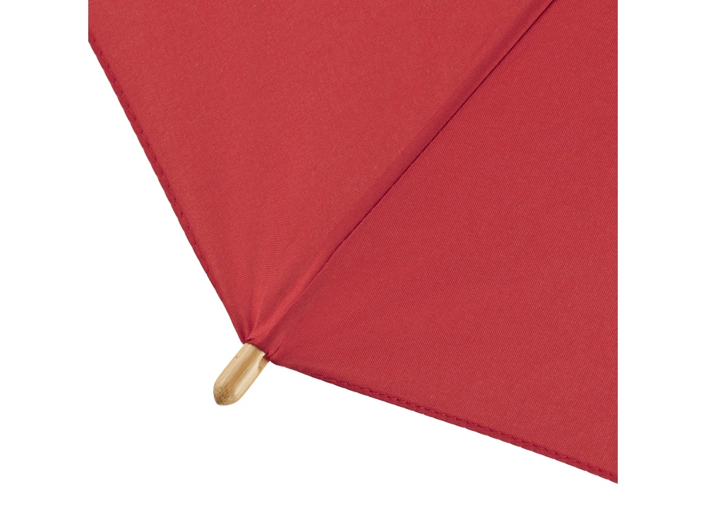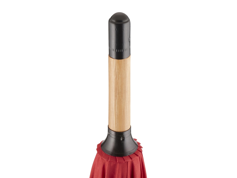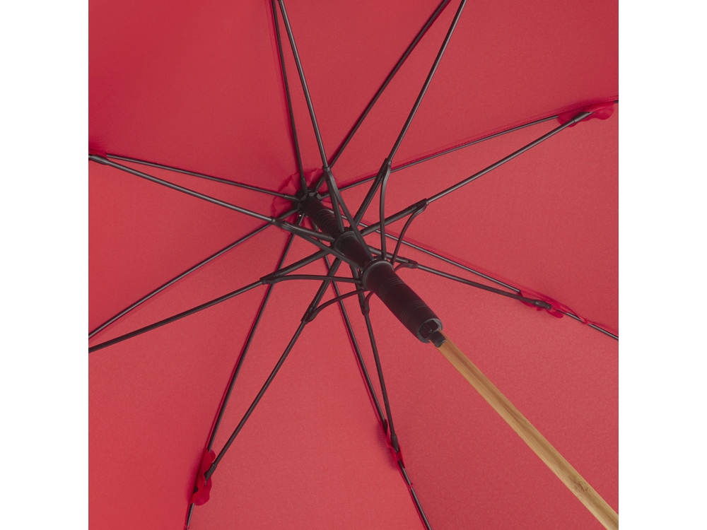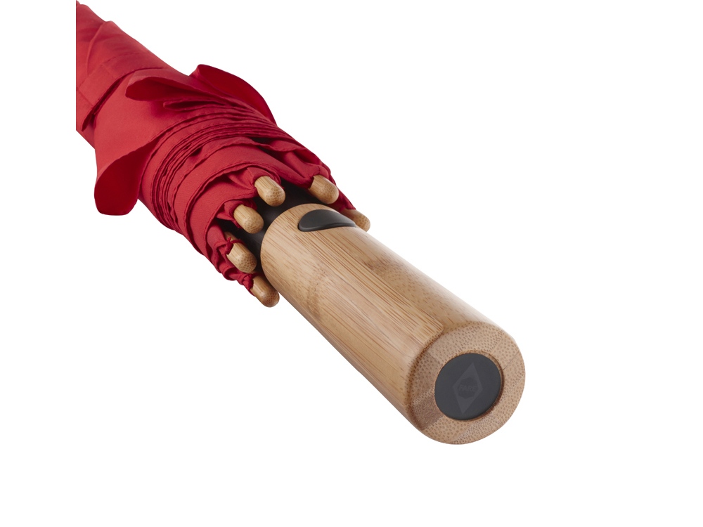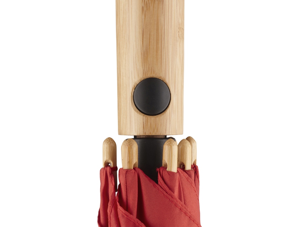 Зонт-трость изготовлен их экологичных материалов: купол из эпонжа из переработанного пластика с использованием технологии WaterSAVE, когда окрашивание материала происходит в процессе производства, за счет чего снижает потребление электроэнергии и воды. Каркас и ручка - из натурального бамбука. Зонт быстро и плавно открывается нажатием кнопки на ручке. -