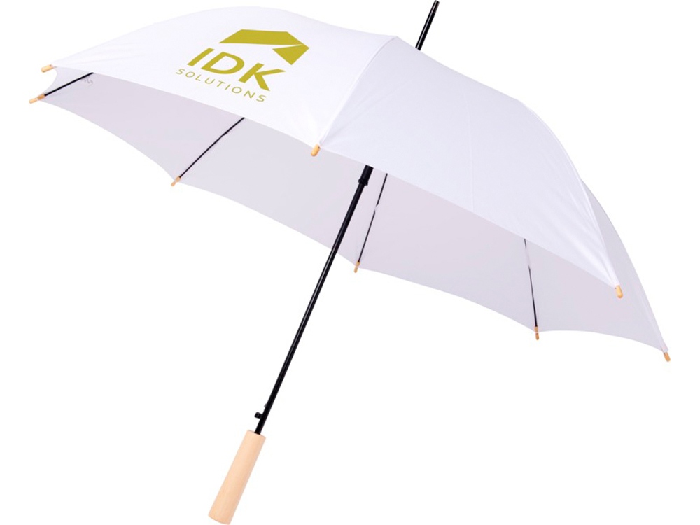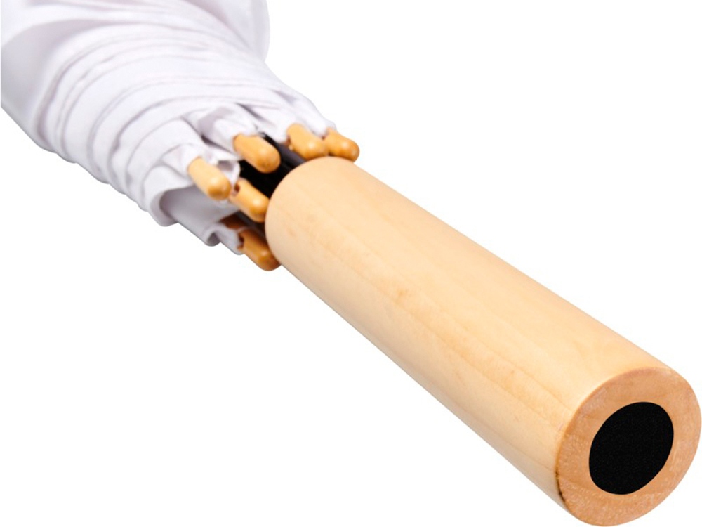 Полуавтоматический зонт с куполом из эпонж полиэстера и переработанного ПЭТ-пластика. Прочный металлический стержень, высококачественная рама со спицами из стекловолокна, обеспечивающая гибкость в ветреную погоду. Сочетание деревянной ручки, кончиков спиц и купола из эпонж полиэстера и переработанного ПЭТ-пластика обеспечивает надежность зонта. -