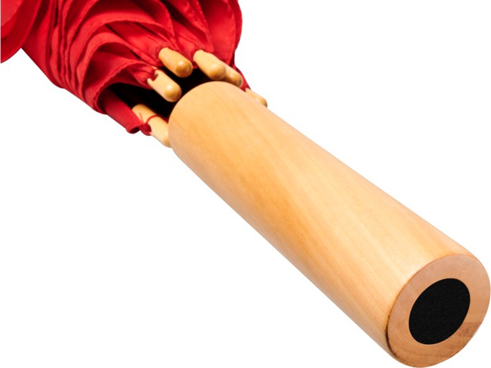 Полуавтоматический зонт с куполом из эпонж полиэстера и переработанного ПЭТ-пластика. Прочный металлический стержень, высококачественная рама со спицами из стекловолокна, обеспечивающая гибкость в ветреную погоду. Сочетание деревянной ручки, кончиков спиц и купола из эпонж полиэстера и переработанного ПЭТ-пластика обеспечивает надежность зонта. -