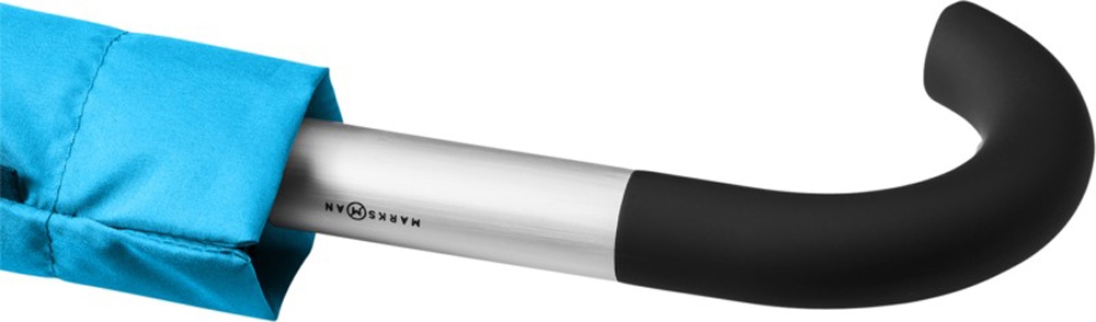 Эксклюзивный автоматический зонт. Металлическая трость и спицы. Специальная ручка, позволяющая вешать зонт на стол. Прорезиненная изогнутая ручка с алюминиевыми деталями. Чехол под цвет зонта. Полиэстер Эпонж. -
