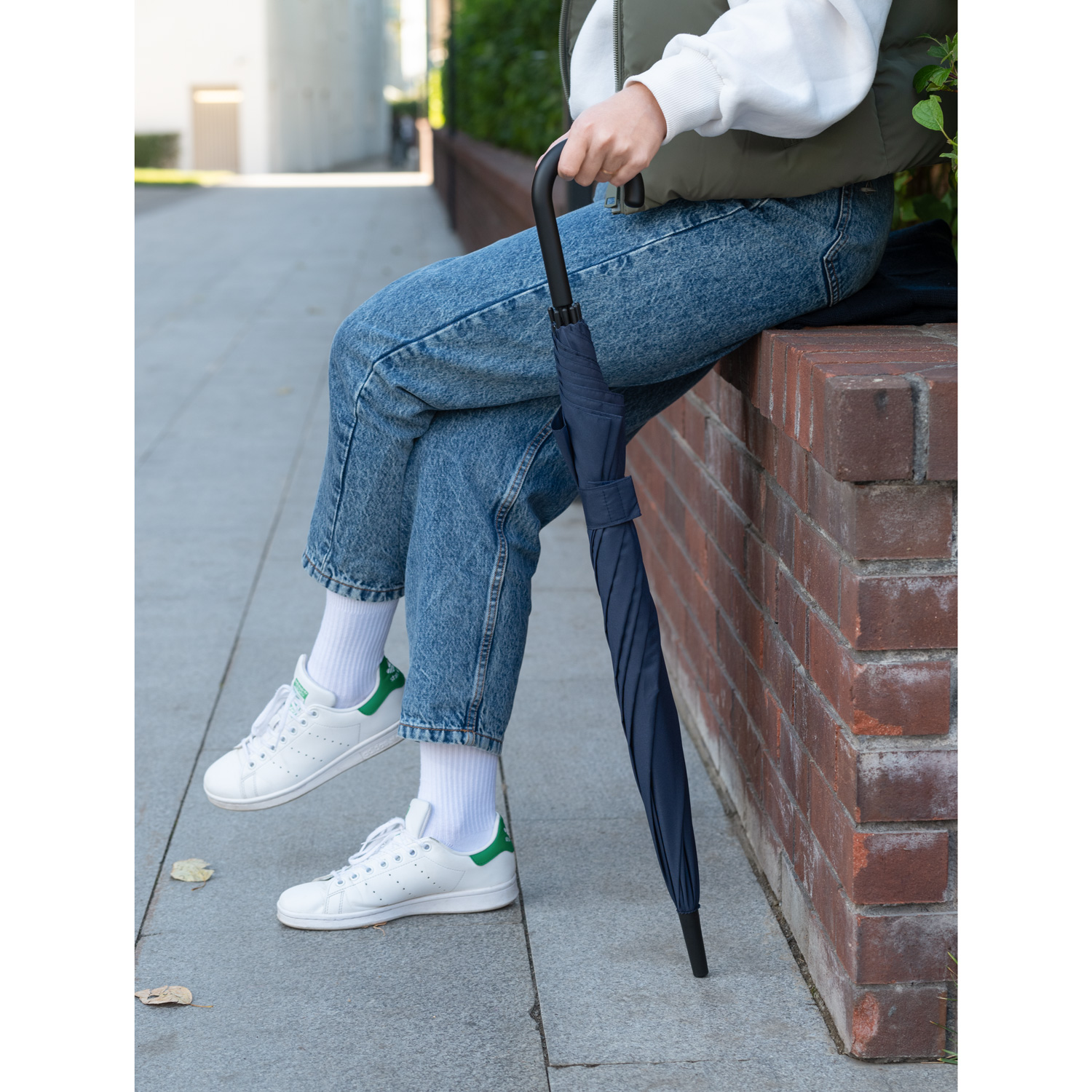 Зонт оснащен системой антишторм, что позволяет спицам не ломаться даже при сильных порах ветра.