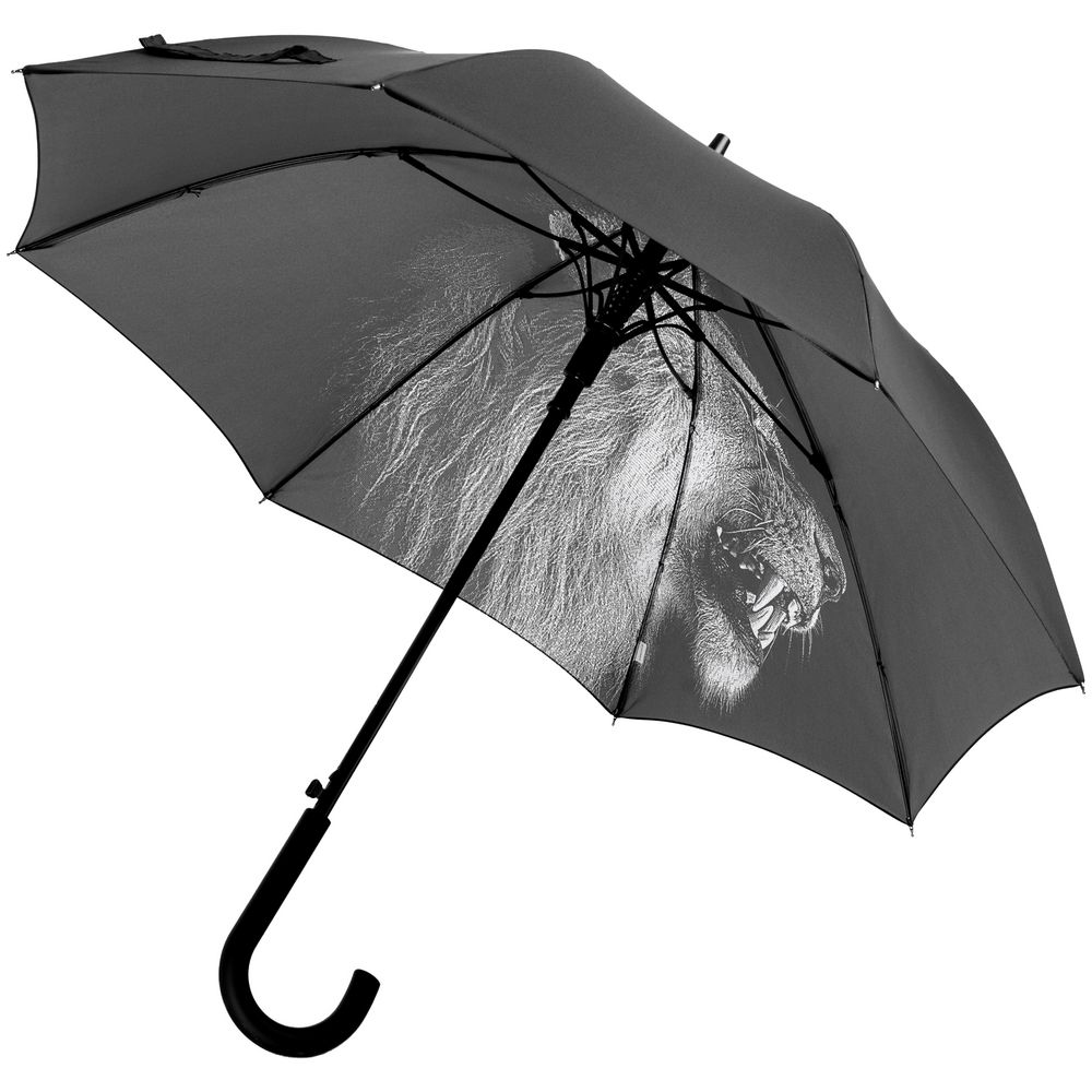 Царь всех зверей эффектно представлен в виде контрастного рисунка с проработкой самых мелких деталей. В такой компании новые подвиги не заставят себя ждать, ведь лев — символ силы, бесстрашия и мудрости.Зонт-полуавтомат. Поставляется в полиэтиленовом пакете. -