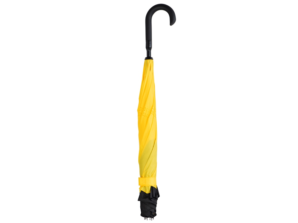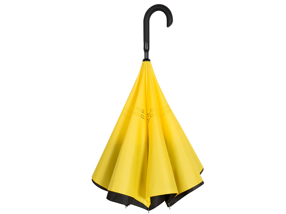 Зонт с обратным сложением складывается внутрь. Очень удобен в использовании, например, во время посадки в машину при складывании вода остается внутри купола. Для просушки зонт можно поставить вертикально на пол в сложенном виде, что позволяет воде стекать без раскрытия зонта. Двойной купол из 190Т эпонжа. Ручка с мягким покрытием soft-touch для большего комфорта. -