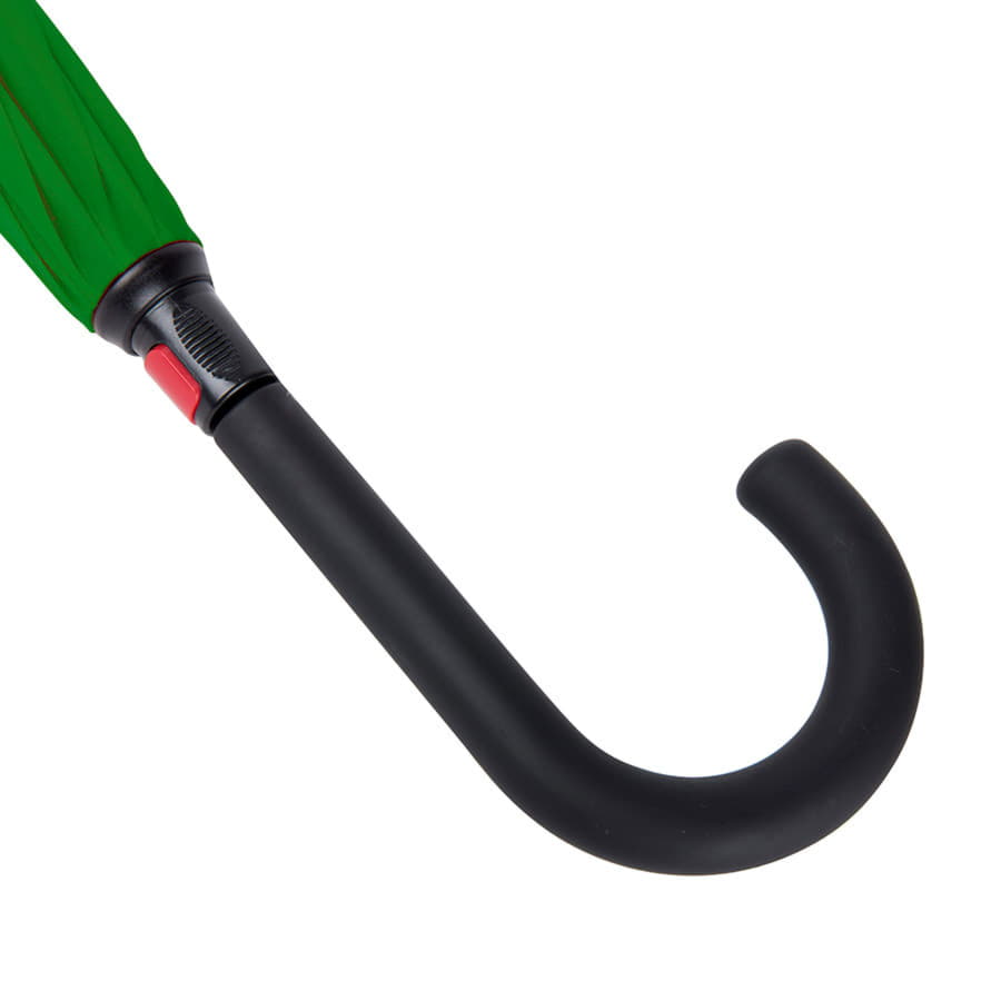 Зонт-трость, механический.Диаметр купола: 106 см., длина стержня 77 см.Состав купола: 100% полиэстер 190T.Состав стержня: металл.Состав спиц: стекловолокно.Ручка: пластик с покрытием soft-touch. Цвет купола: внешняя часть чёрная, внутренняя часть зелёная цвет близкий к пантону 348С. -