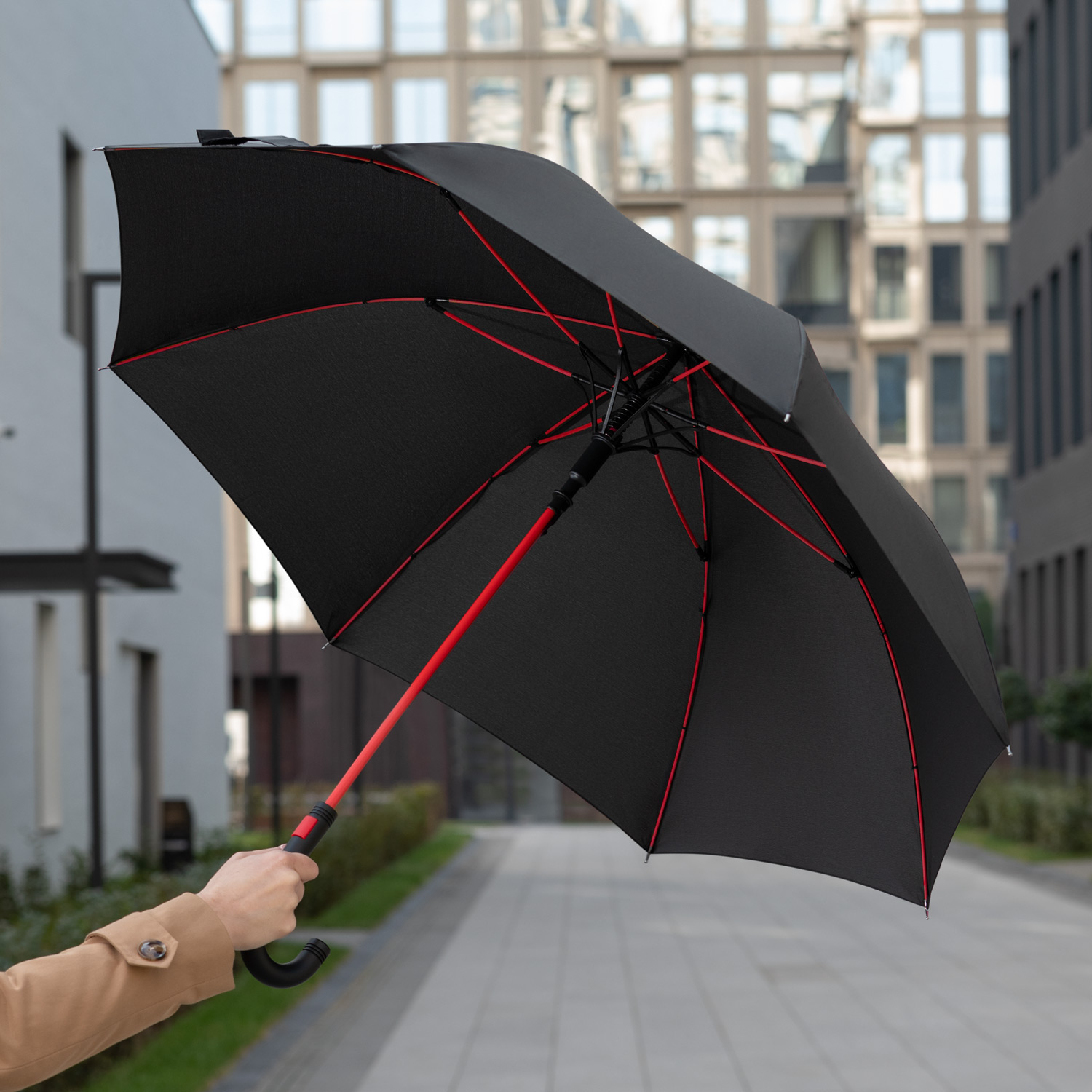 Зонт-трость Quantum, черный/красный