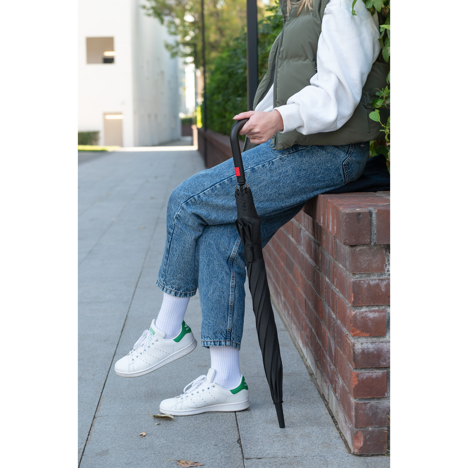 Полуавтоматический зонт быстро раскрывается при нажатии на кнопку. Контрастные цветные спицы окрашены в тон трости и кнопки на ручке. Зонт оснащен гибкими спицами с конструкцией антиветер, которая защищает зонт от поломок при резких порывах ветра. PU-покрытие на ручке зонта обеспечивает комфортное и долговечное использование аксессуара: оно устойчиво к истиранию, не скользит в руке и не становится липким.