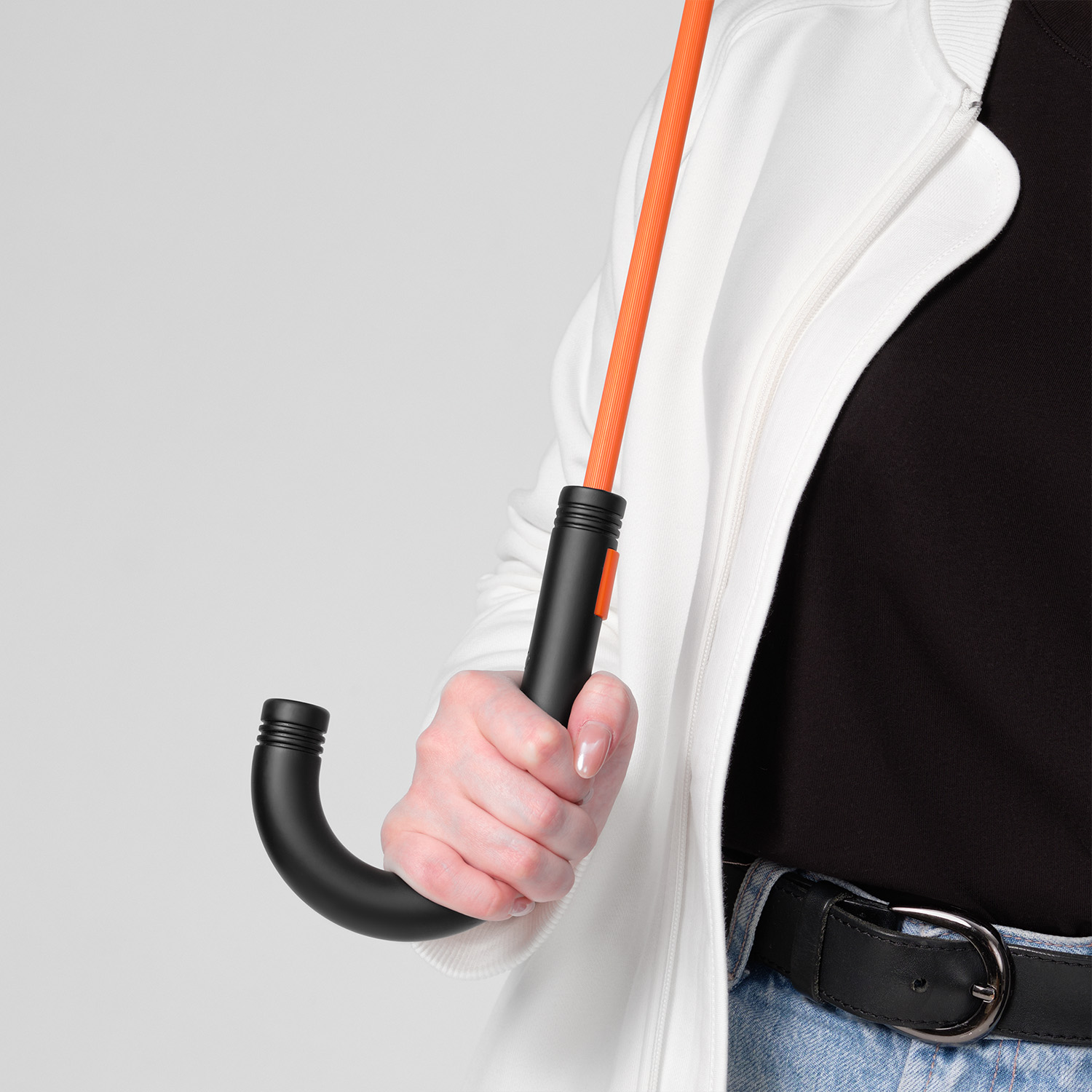 Полуавтоматический зонт быстро раскрывается при нажатии на кнопку. Контрастные цветные спицы окрашены в тон трости и кнопки на ручке. Зонт оснащен гибкими спицами с конструкцией антиветер, которая защищает зонт от поломок при резких порывах ветра. PU-покрытие на ручке зонта обеспечивает комфортное и долговечное использование аксессуара: оно устойчиво к истиранию, не скользит в руке и не становится липким.