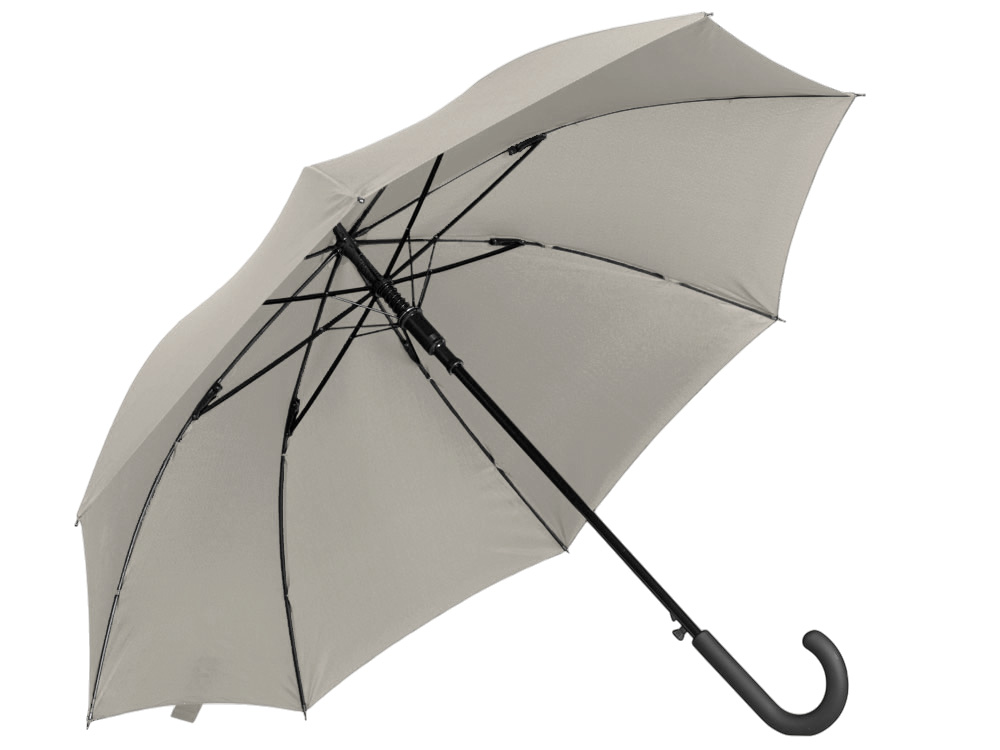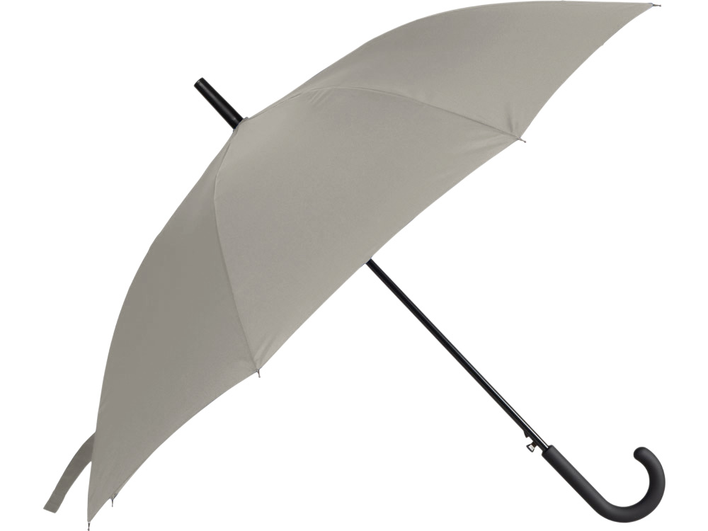 Купол зонта-трости выполнен из переработанного пластика. На ручке зонта расположена кнопка автоматического открытия. Гибкие спицы из стекловолокна делают зонт стойким к порывам ветра. Удобная ручка софт тач. Фиксирующая купол застежка на липучке шириной 3 см - дополнительная опция для нанесения вашего логотипа. -