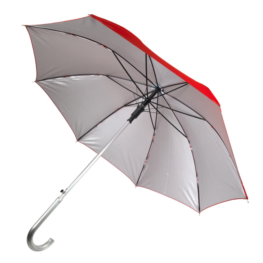 Зонт-трость, полуавтомат.Диаметр купола: 103 см., длина стержня 88,5 см.Состав купола: 100% полиэстер 190TСостав стержня: металл.Состав спиц: металл.Ручка: пластик.Цвет купола: внешняя часть pantone 1805 С, внутренняя часть Pantone 877 С.Двухцветная базовая модель зонта с изюминкой! Внутренняя часть купола серебристого цвета. Упаковка – пластиковый пакет -