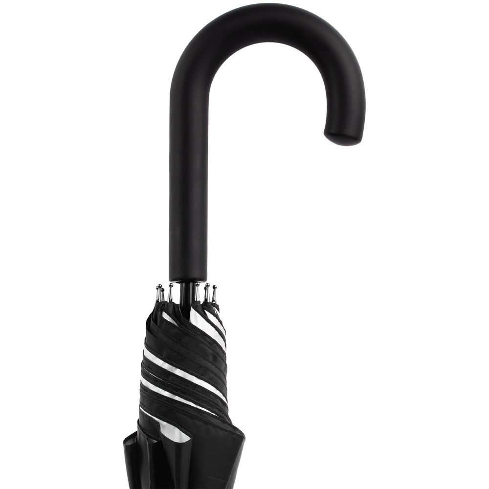 Легкий зонт-трость классической формы, который выглядит нескучно благодаря современным деталям исполнения — серебристому покрытию на внутренней части купола и мягкой прорезиненной ручке.- Зонт-полуавтомат, 8 спиц
