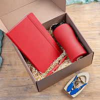 Набор подарочный SILKYWAY: термокружка, блокнот, ручка, коробка, стружка, красный
